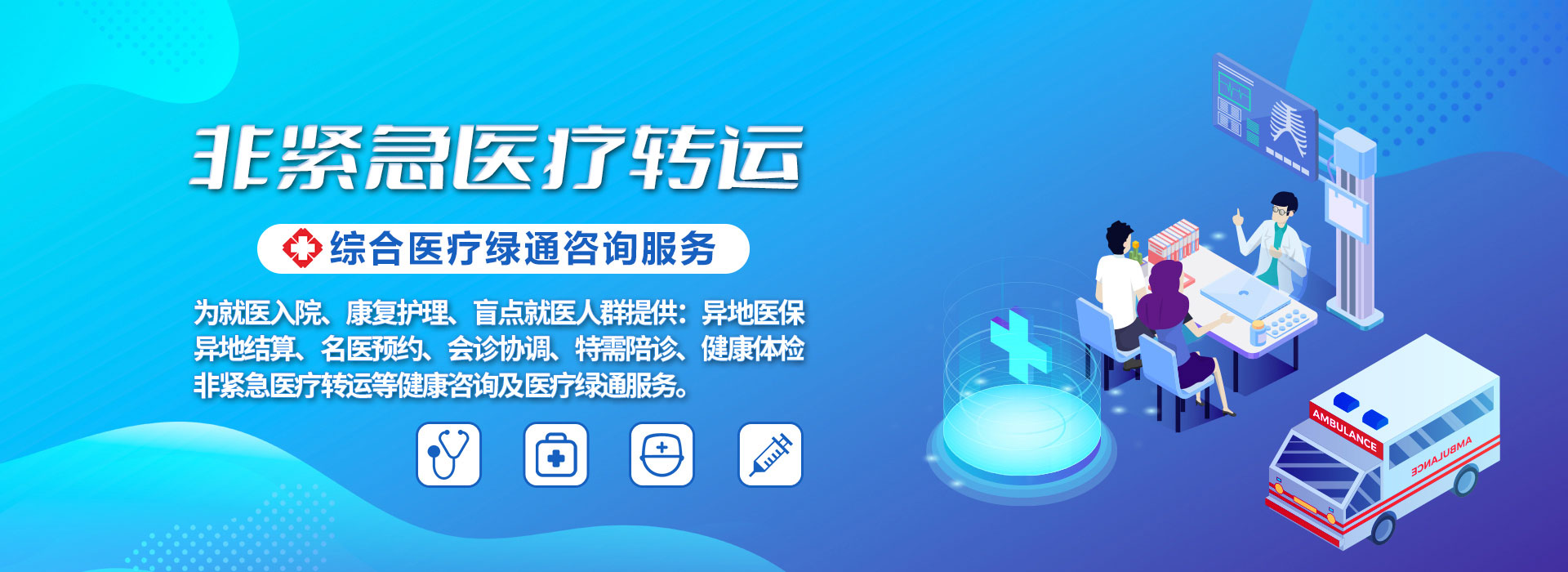 長(zhǎng)途轉(zhuǎn)運(yùn)、特需服務(wù)、醫(yī)療保障服務(wù)。
